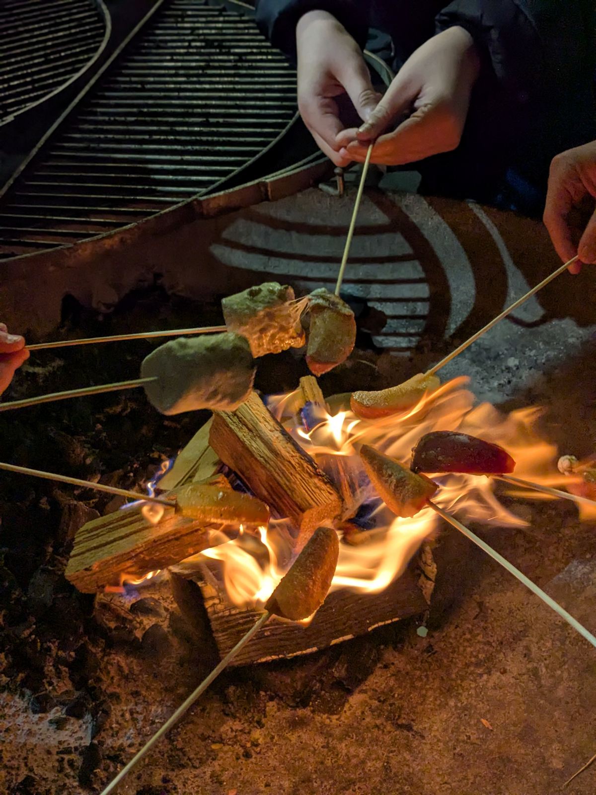 Last Sunday, Sarah and I had a brilliant time with our young people planning this year’s Christingle services. They have chosen the hymns, readings and theme for the service: “God’s love and light envelops the world.” We are looking forward to seeing them lead these services, do come along and support them. We ended the evening roasting marshmallows and toffee apples on the fire (photo below).